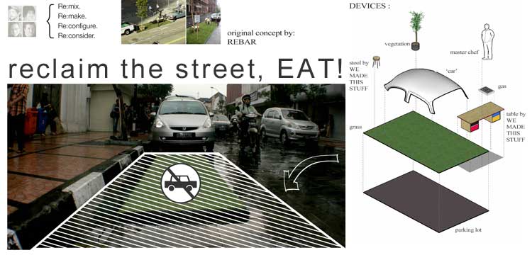 Salah satu usaha yang dilakukan oleh teman-teman di bandung adalah KeukenBDG, dengan moto mereka spice of space, mereka melakukan gerilya menempati ruang ruang jalan dan publik, mengundang komunitas lokal untuk menjadi koki dan memasak kemudian membagi secara gratis, salah satu usaha mengembalikan pada publik ruang ruang yang menjadi komoditas pasar.