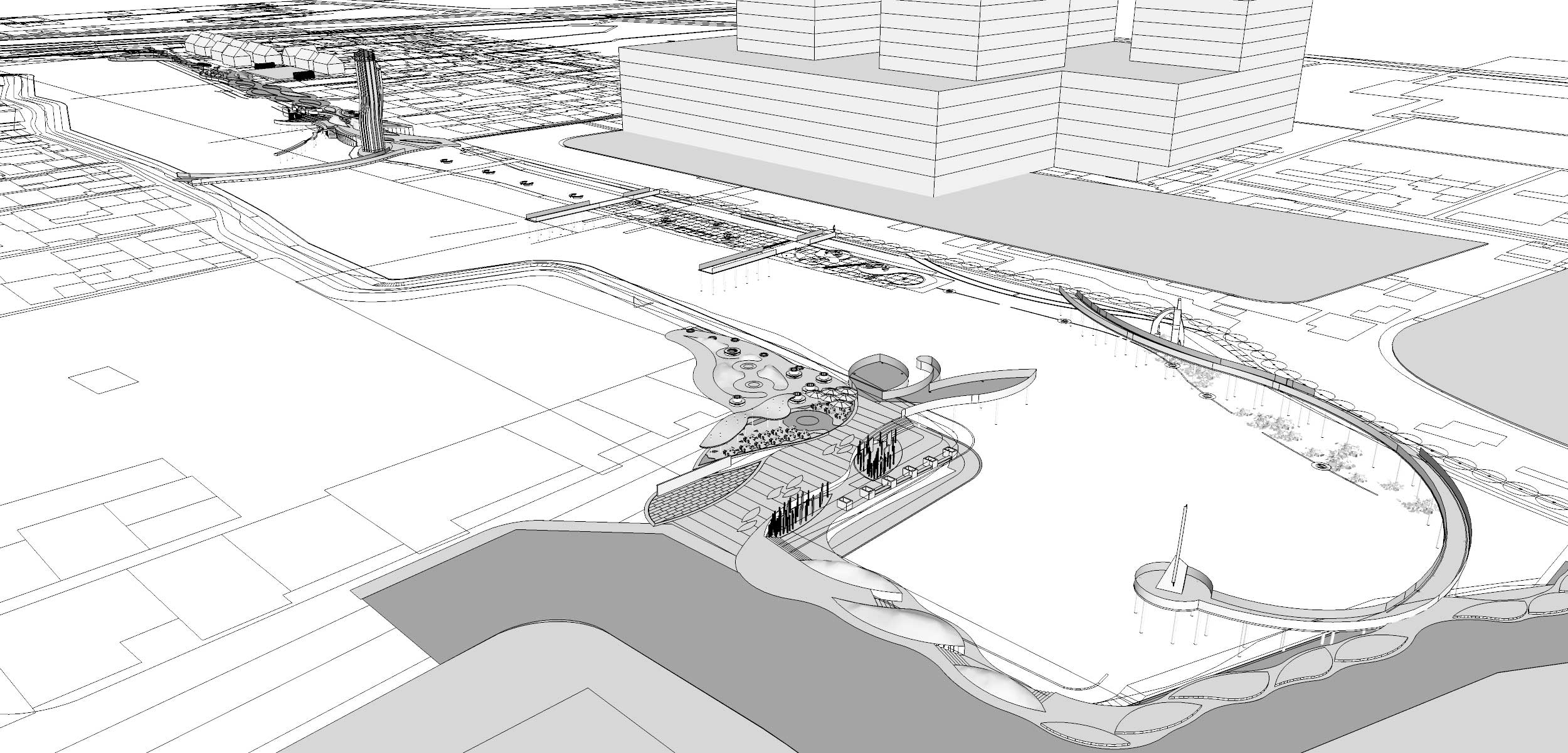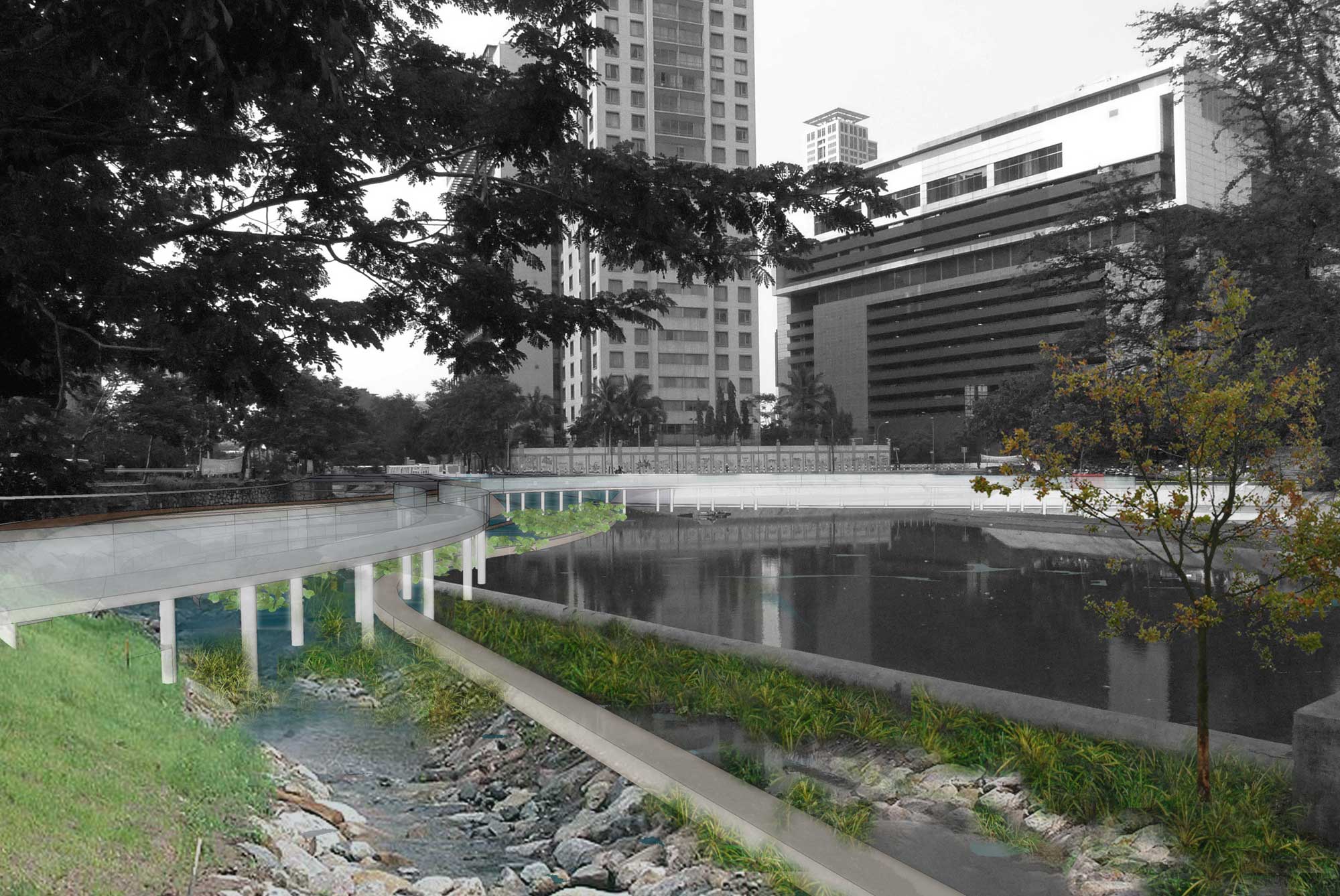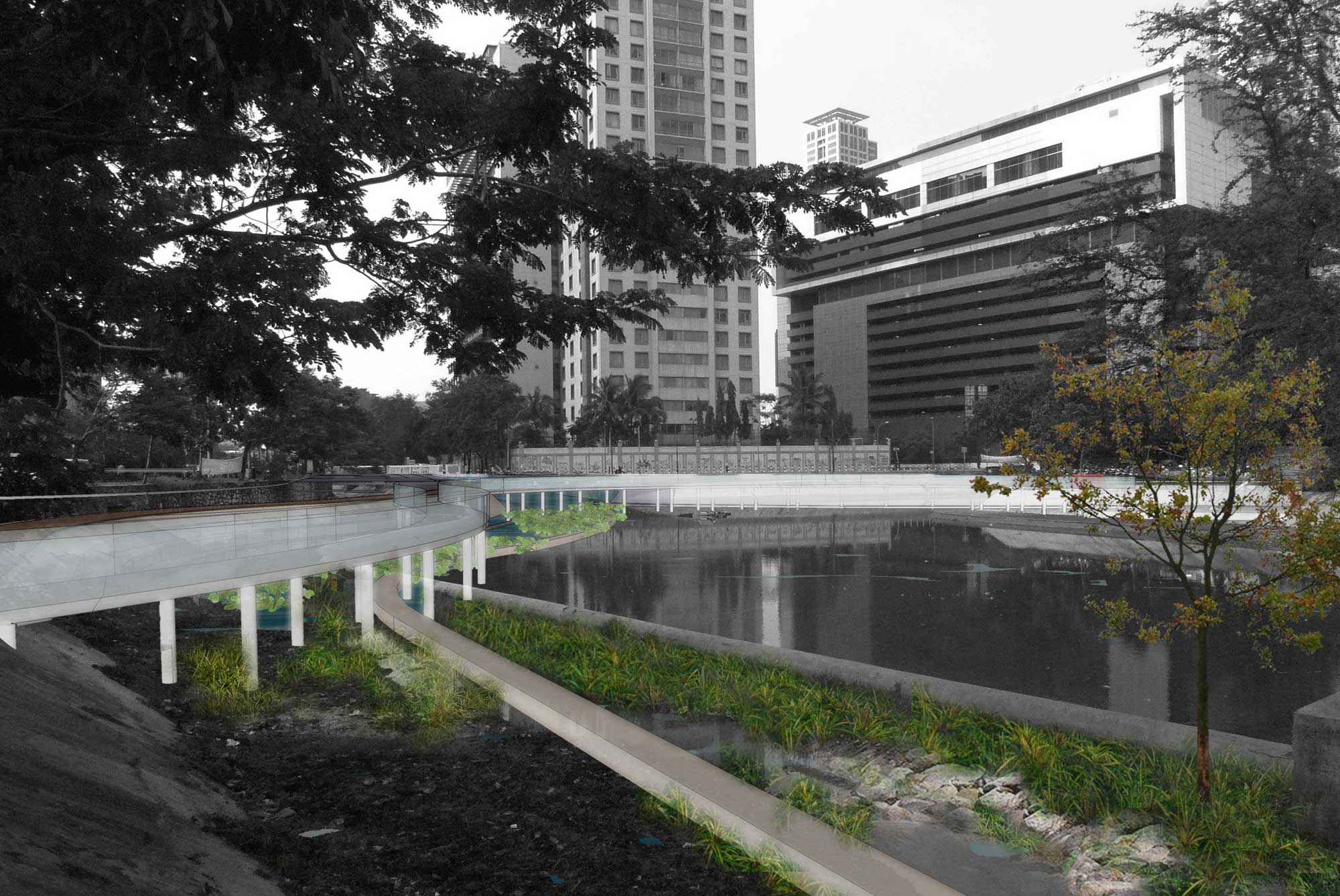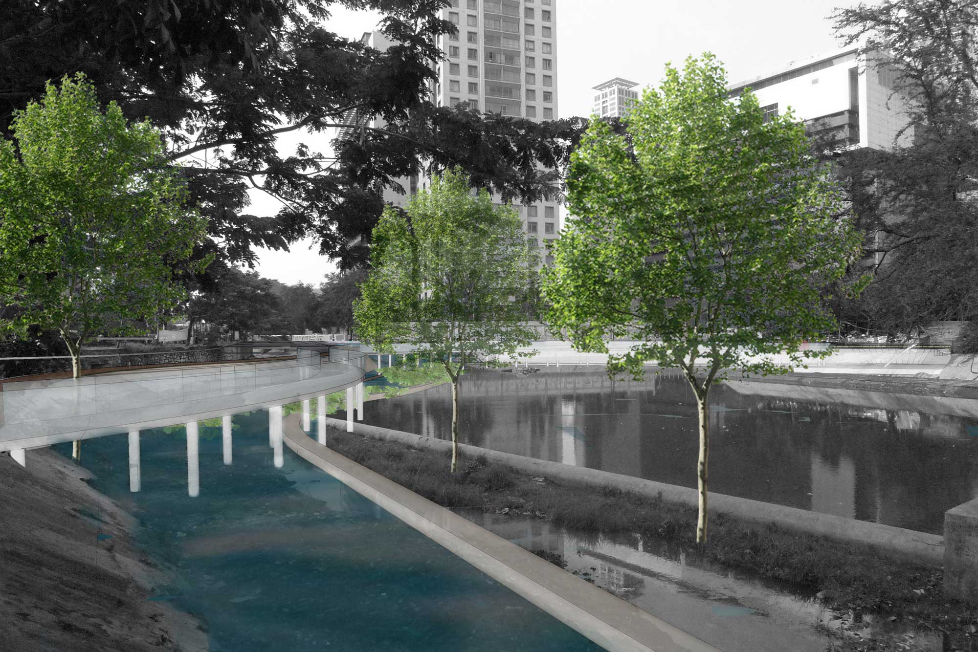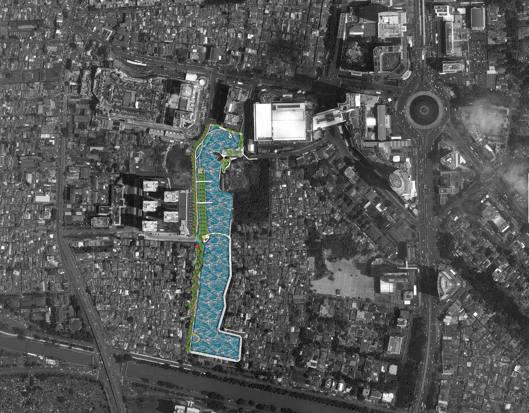 Gagasan ini awalnya terdiri dari beberapa ruang publik di Jakarta, termasuk Danau Sunter dan waduk Ria rio, namun sebagai workshop gagasan awal, pilihan jatuh di Waduk Melati yang berada di Pusat kota Jakarta. Kondisi Waduk Melati mulai terkepung gedung-gedung perbelanjaan dan perumahan yang semakin terdesak developer-developer besar. Sementara di sekitar waduk pluit ada sebuah lahan kosong besar yang kemungkinan kedepannya akan dibangun.
