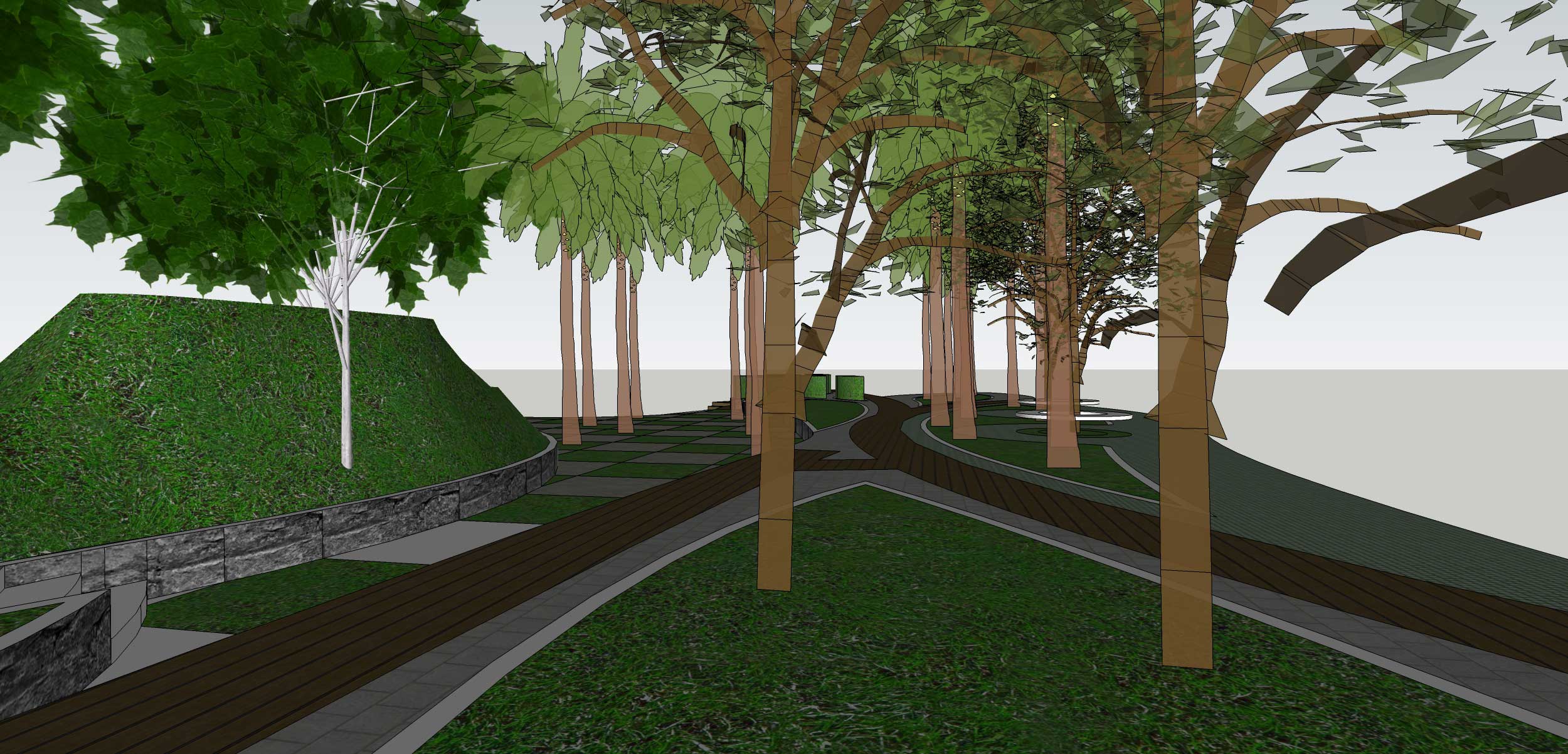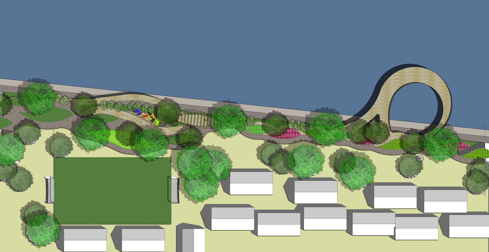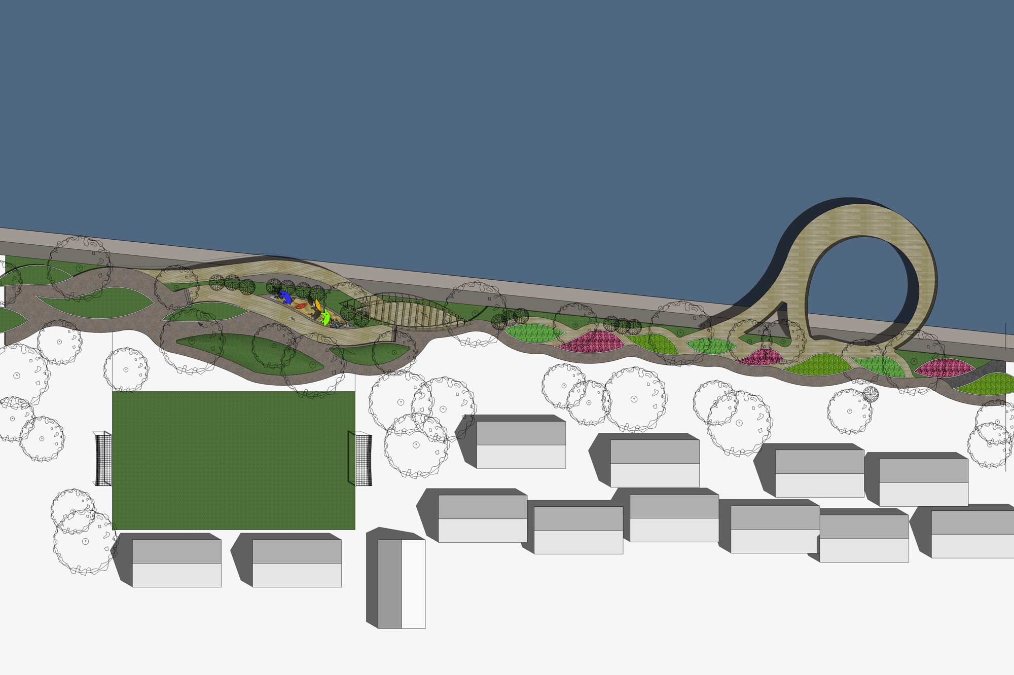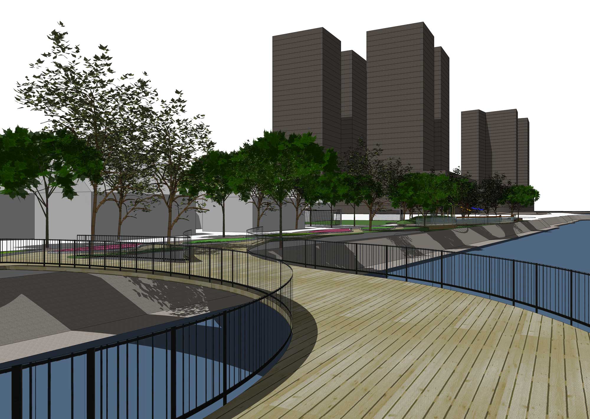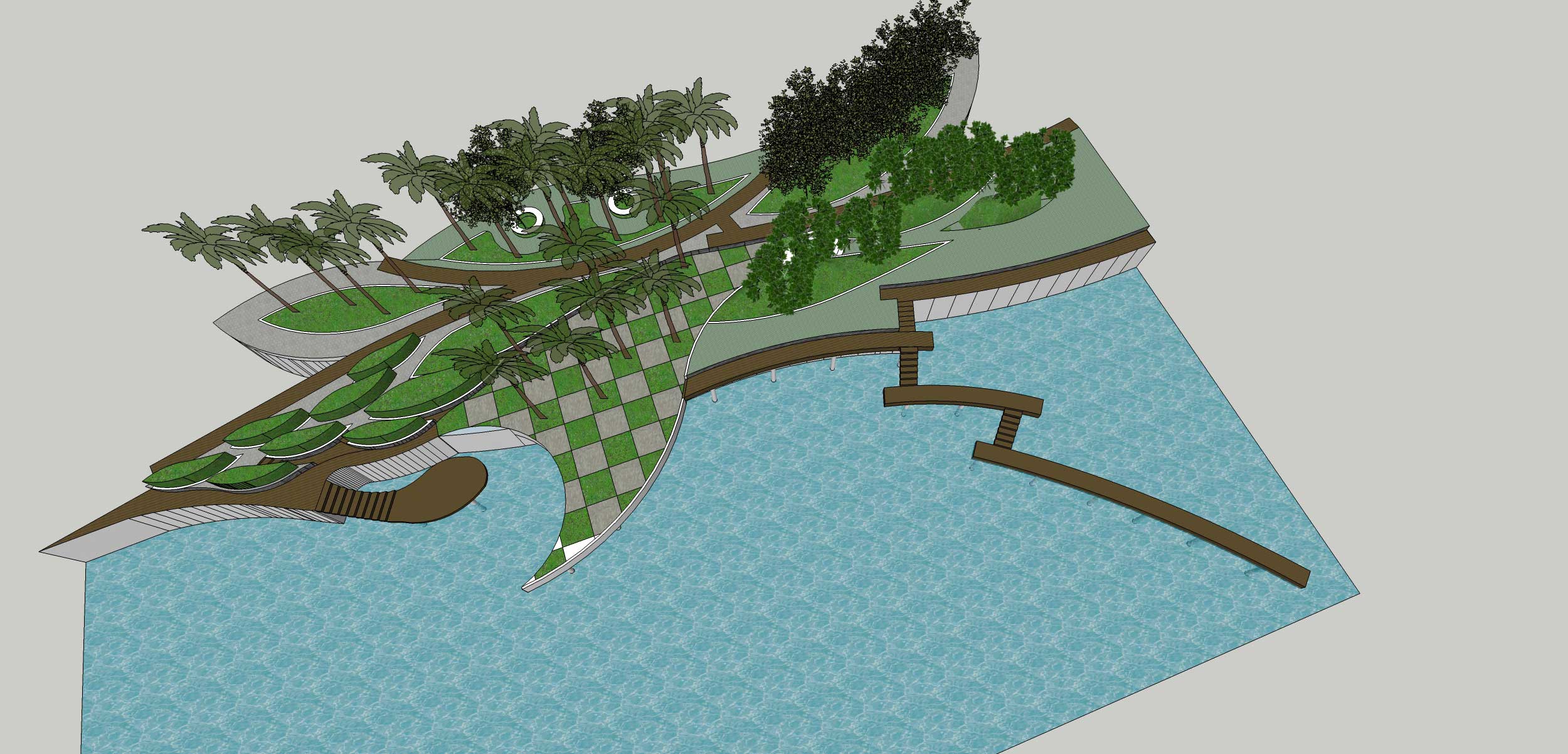 Gagasan Placemaking yang di adaptasi dari PPS ini kemudian mencoba memberikan program ruang yang sesuai dengan karakter permasing-masing bagian. Dari Galeri, ruang baca, ruang bermain anak, atau urban furniture agar masyarakat bisa menikmati taman di pinggir danau ini dengan maksimal.