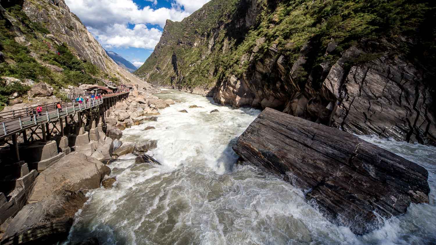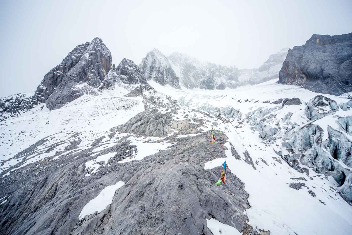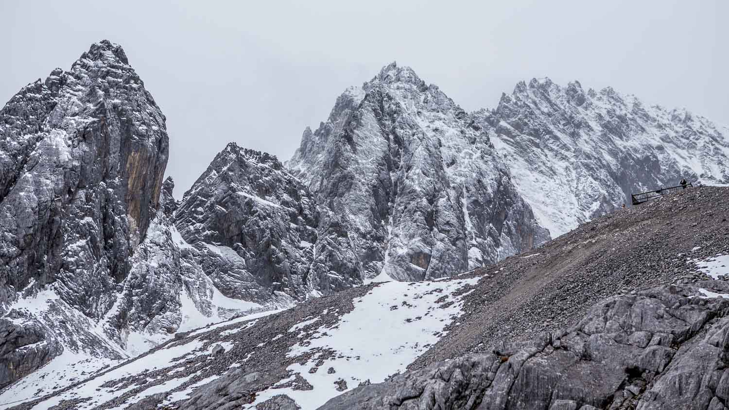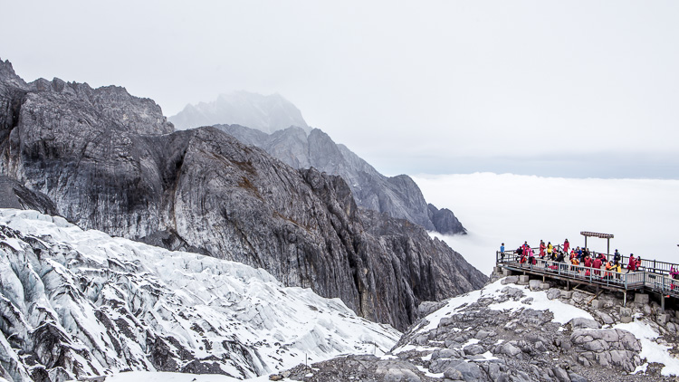 Sekarang, saya sedang beranjak turun. Saya menyusuri dek kayu selebar 3 meter yang telah di buat oleh Pemerintah China untuk menuju lembah Glasier gunung Yulong yang puncaknya mencapai 5596 m di atas permukaan air laut. Hanya 3 dari 20 rombongan kami yang bisa mencapai puncak jalur pendakian yang berada di 4680 m diatas permukaan air laut karena oksigen yang tipis. Gunung Yulong memiliki permukaan es abadi diatas ketinggian 4500m sehingga menjadi daya tarik bagi pengunjungnya. Untuk mencapai puncaknya, Pemerintah China memfasilitasi dengan kereta gantung dari bangunan penerima dari ketinggian 3000 m ke 4500 m. Setelah itu, pengunjung bisa menikmati glasier dengan pemandangan kota Lijiang di bawahnya yang sering kali tertutup awan.