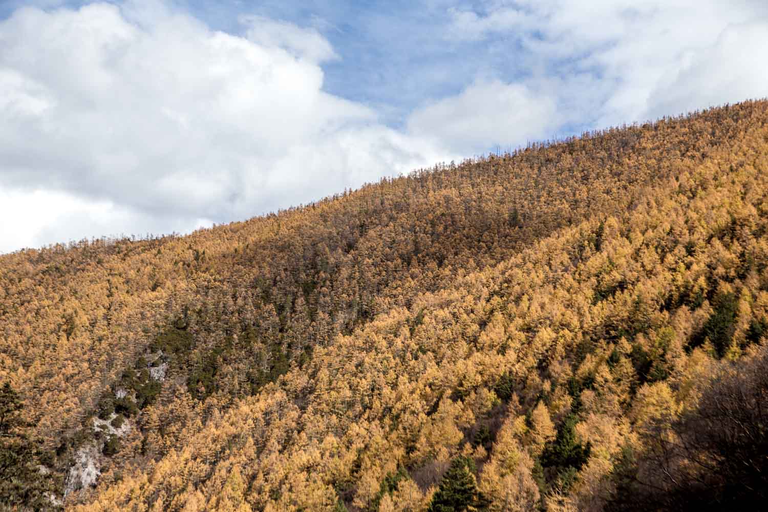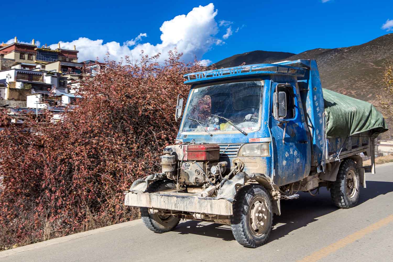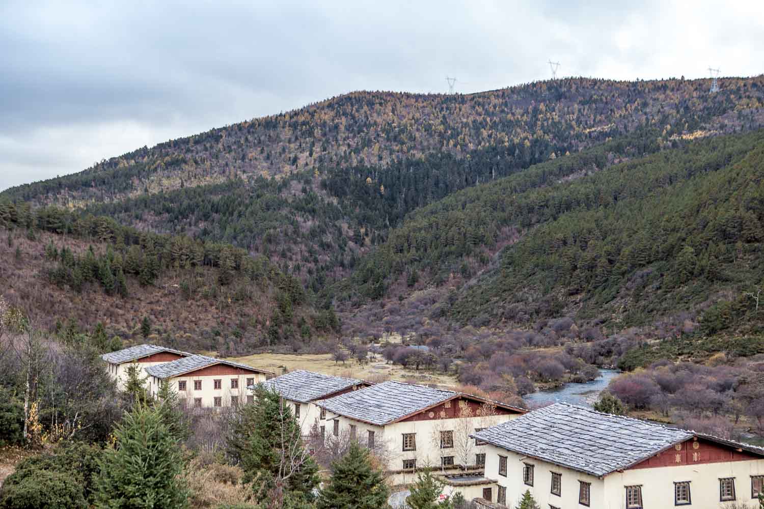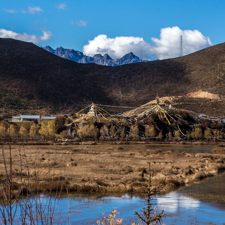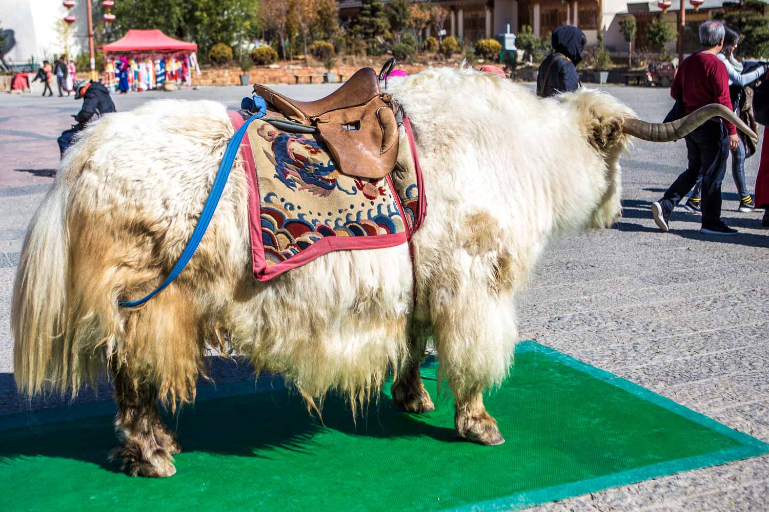 Dari Lijiang, kami melanjutkan ke kota Shangri-la dengan bis selama 2 jam. Sepanjang perjalanan, kami mulai menemukan plateau-plateau atau dataran rata di ketinggian khas tibet dan pagoda-pagoda yang terhiaskan bendera doa khas Tibet. Salah satu tanda ketika kita sudah mencapai ketinggian 3000-4000 m keatas, kita akan menemukan Yak. Yak-yak atau kerbau khas Tibet yang lebih gondrong dari kerbau biasanya, bertebaran sepanjang perjalanan dari Lijiang ke Shangri-la.