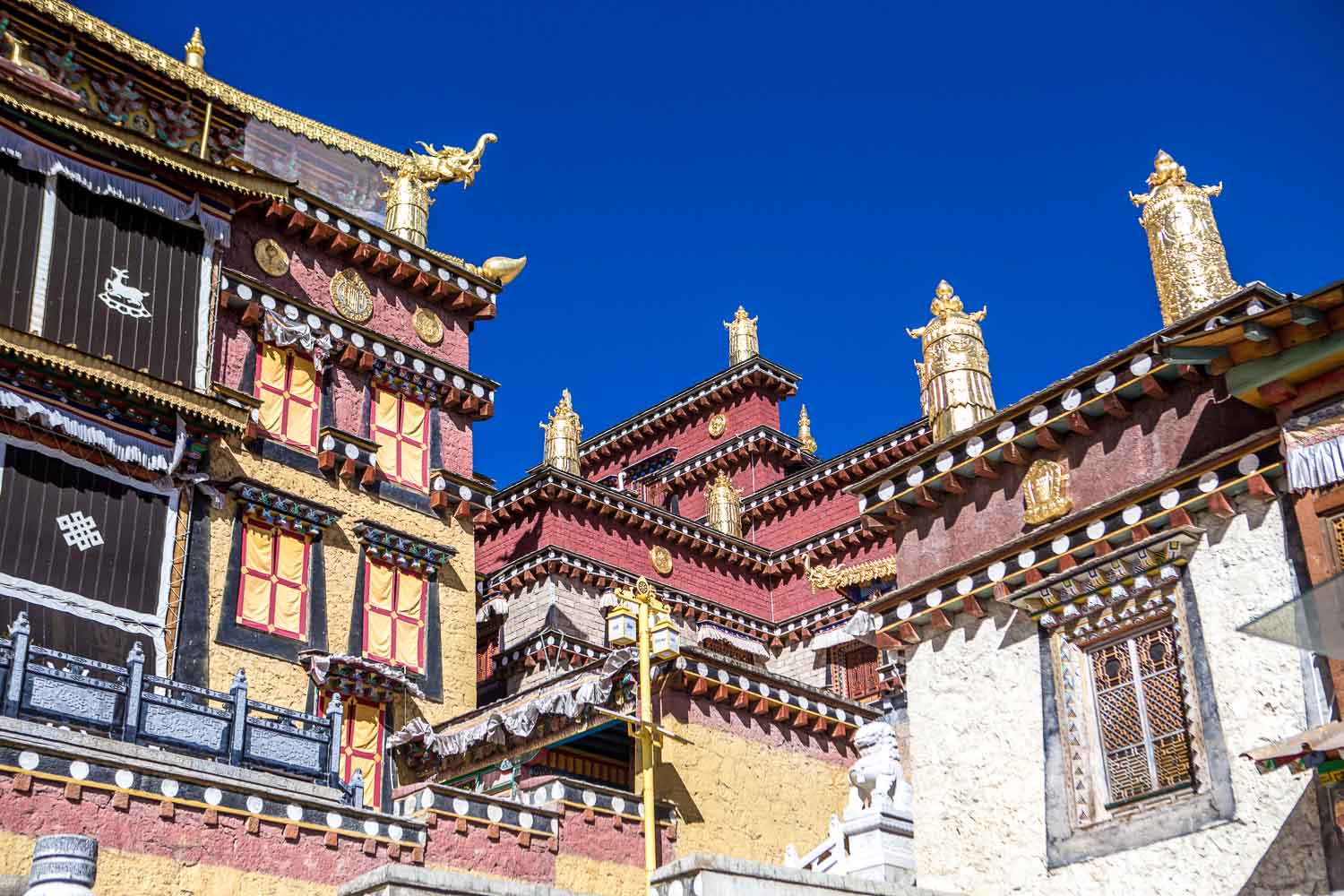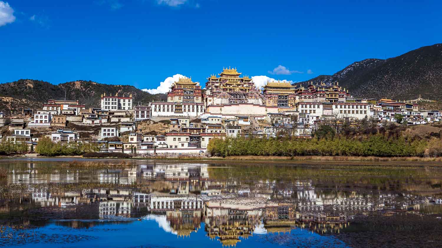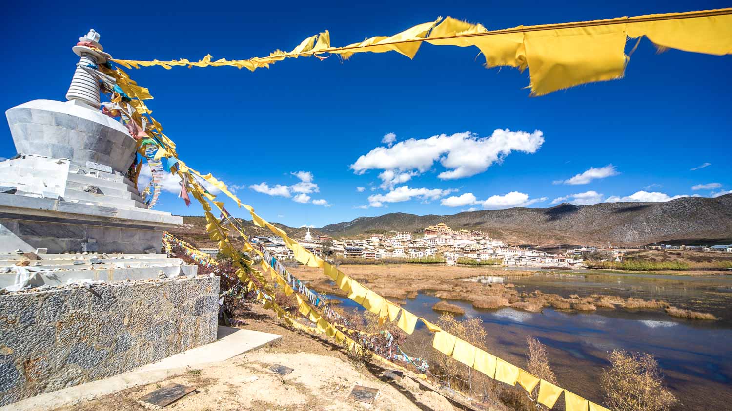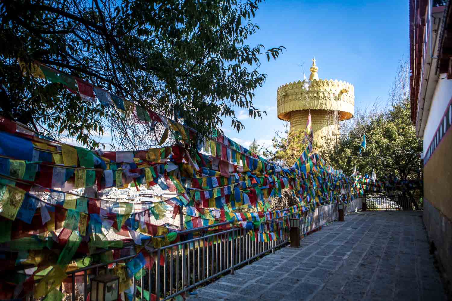 Kuil Sumtseling di dirikan tahun 1679 oleh Dalai lama ke 5 dan mengalami kerusakan parah ketika revolusi budaya di China pada tahun 1980-an awal. Kini Kuil Sumtseling telah di restorasi dan dihuni sekitar 2000 biksu. Di pusat kota Shangri-la terdapat kuil Songzalin yang dikelilingi oleh rumah-rumah khas Tibet lengkap dengan menara doa yang bisa di putar berwarna emas. Orang tibet percaya dengan memutar menara atau mani ´khor lo atau pemutar doa yang di tempelkan mantra, memiliki efek yang sama dengan mengucapkan doa tersebut.