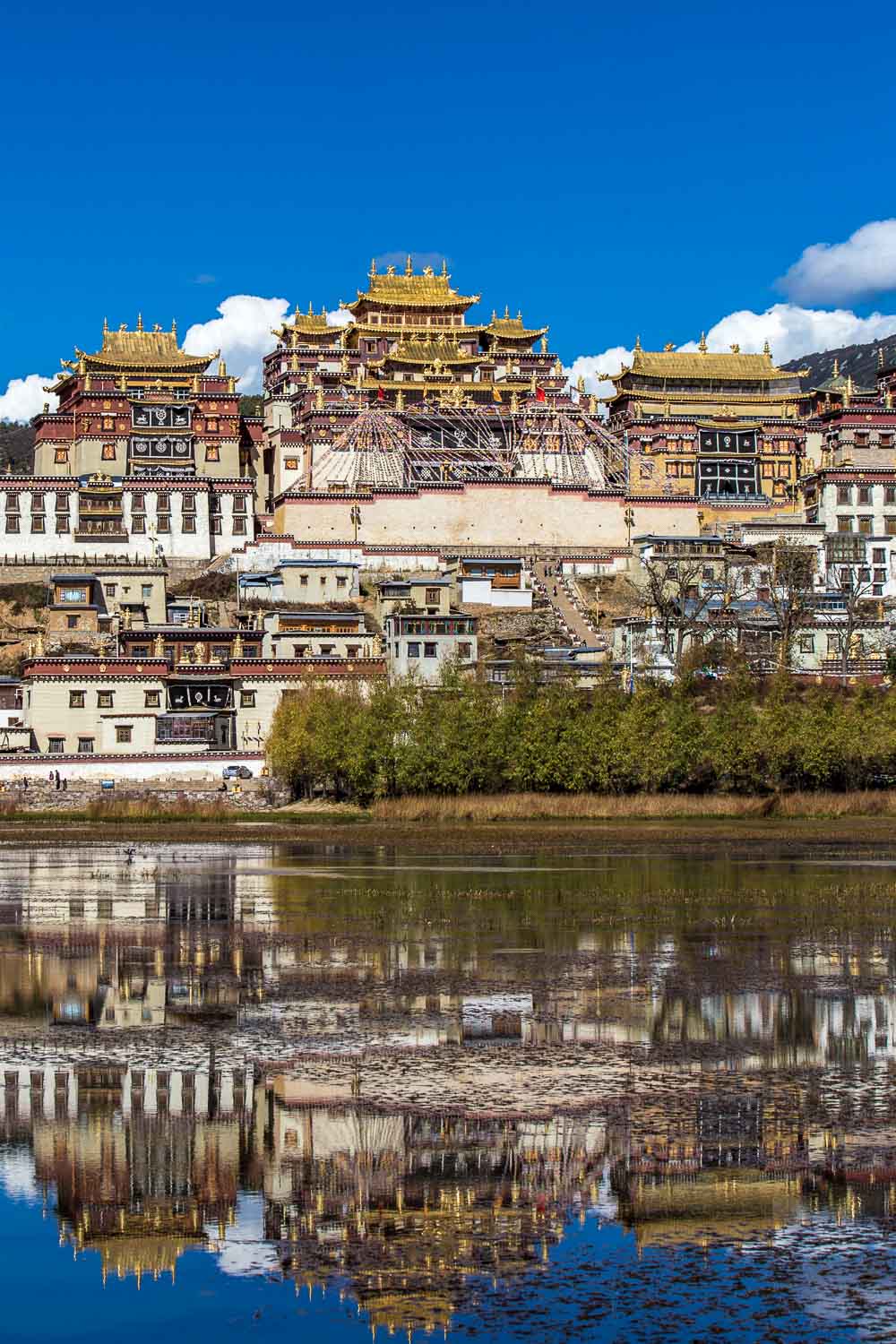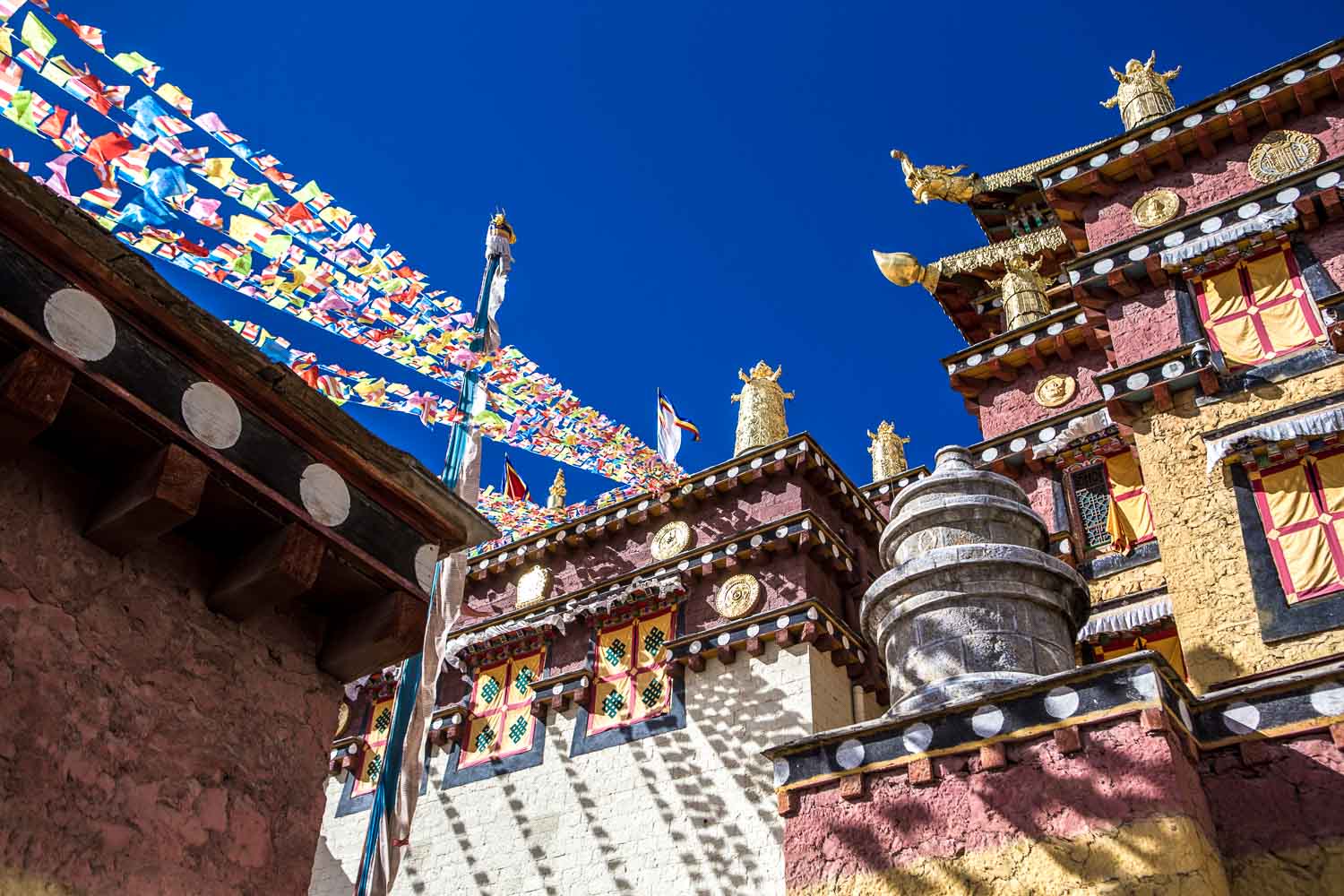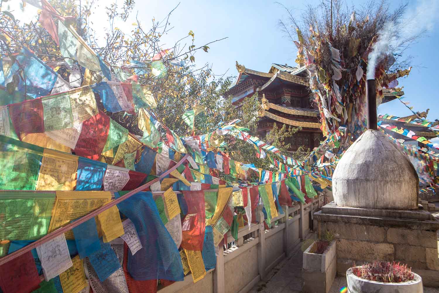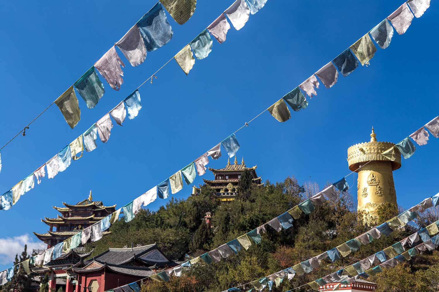 Kuil Sumtseling di dirikan tahun 1679 oleh Dalai lama ke 5 dan mengalami kerusakan parah ketika revolusi budaya di China pada tahun 1980-an awal. Kini Kuil Sumtseling telah di restorasi dan dihuni sekitar 2000 biksu. Di pusat kota Shangri-la terdapat kuil Songzalin yang dikelilingi oleh rumah-rumah khas Tibet lengkap dengan menara doa yang bisa di putar berwarna emas. Orang tibet percaya dengan memutar menara atau mani ´khor lo atau pemutar doa yang di tempelkan mantra, memiliki efek yang sama dengan mengucapkan doa tersebut.