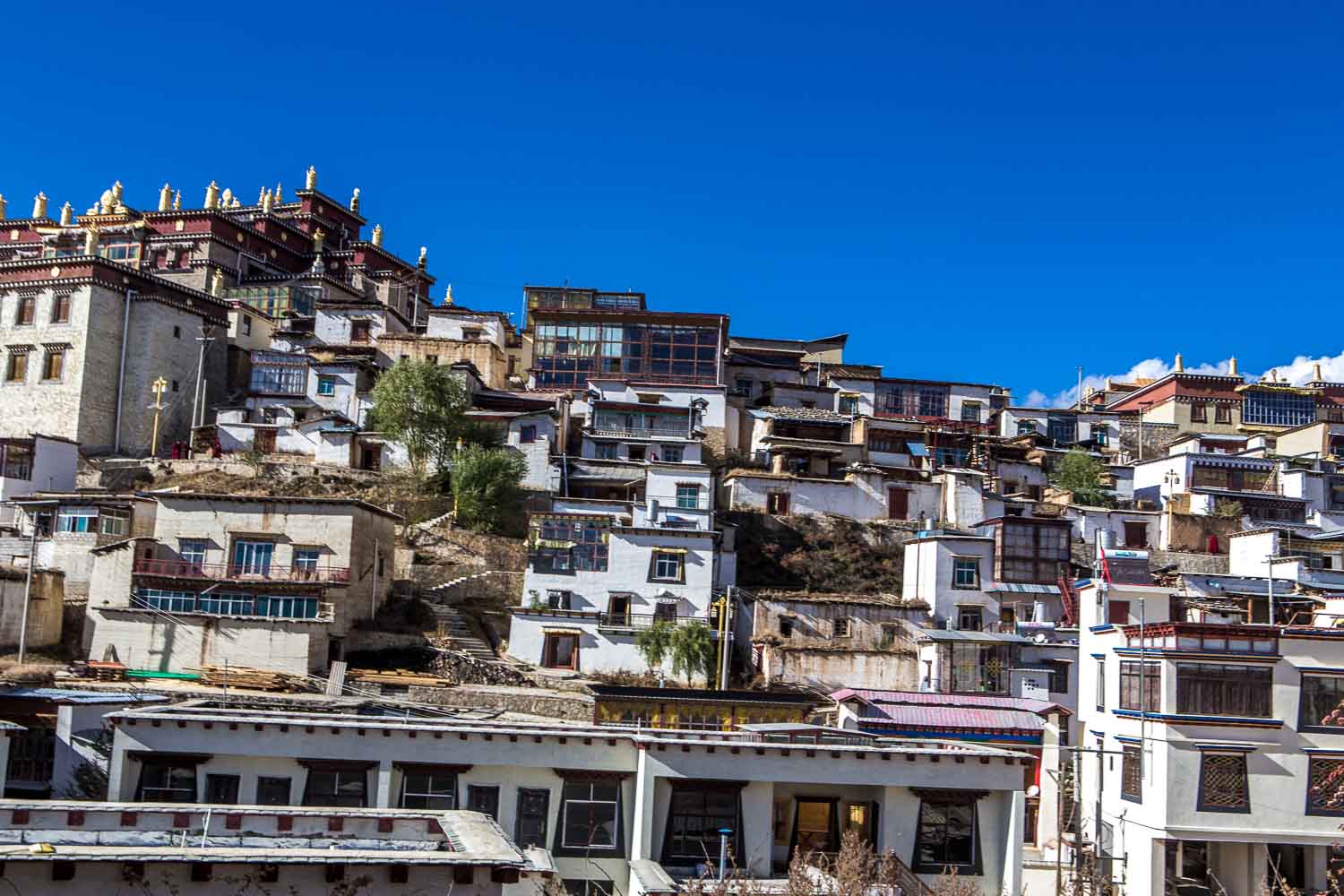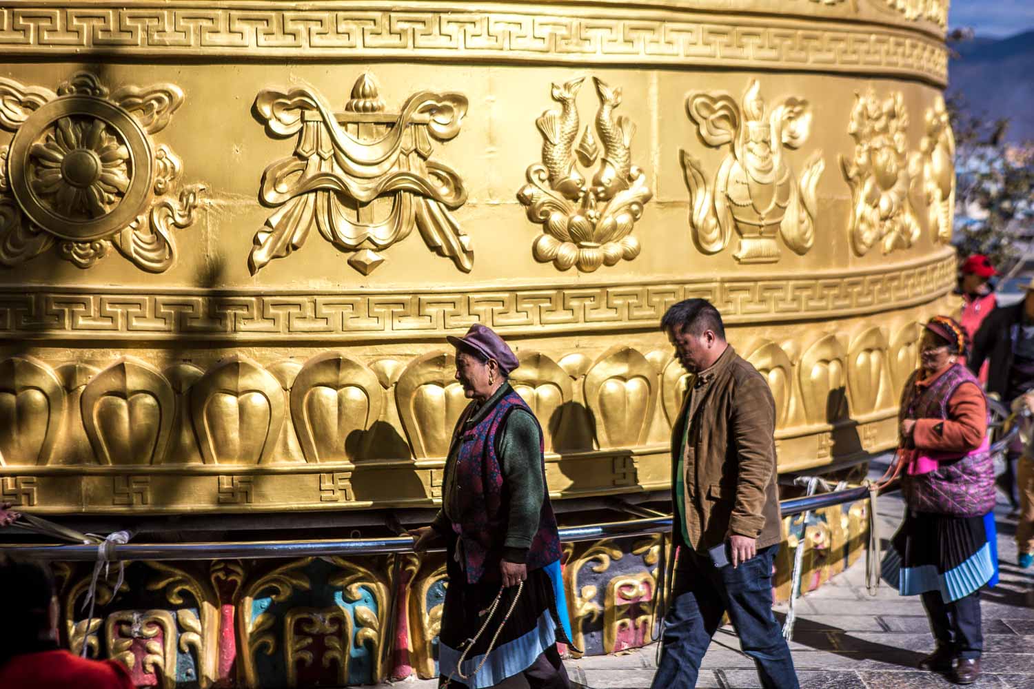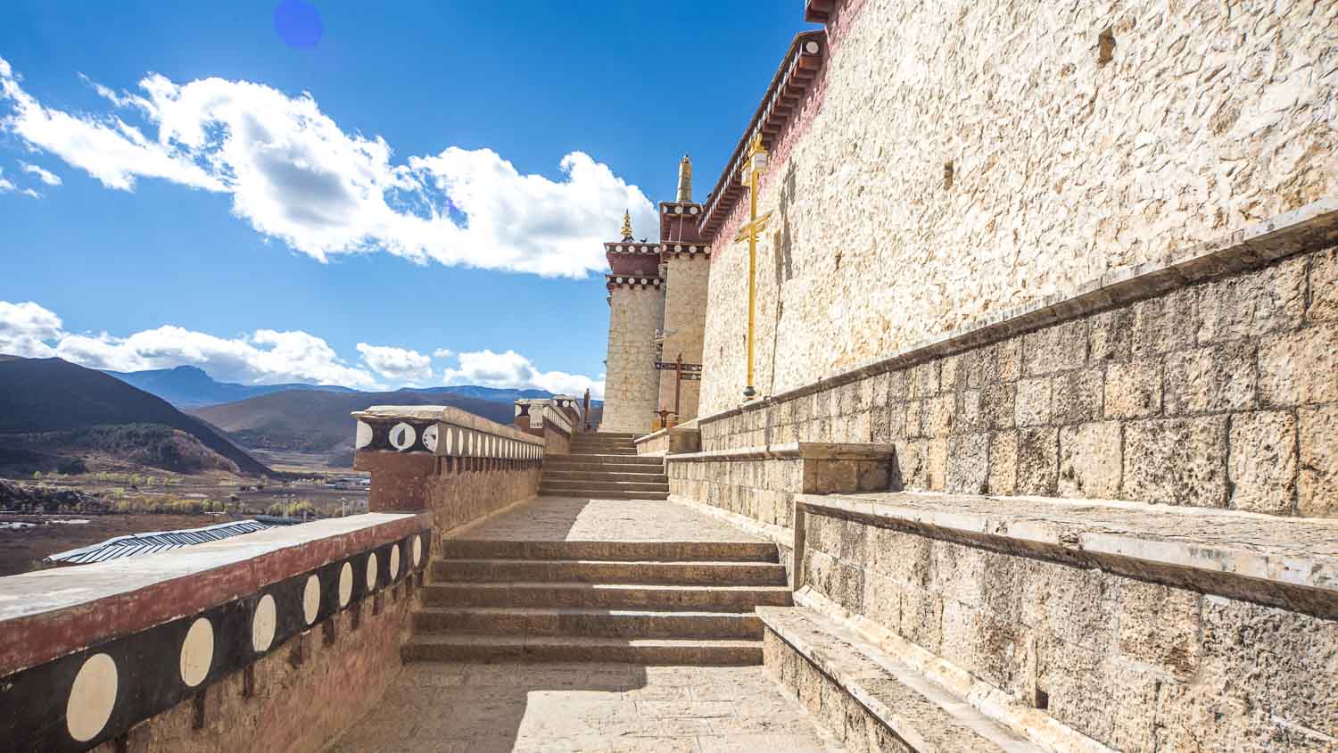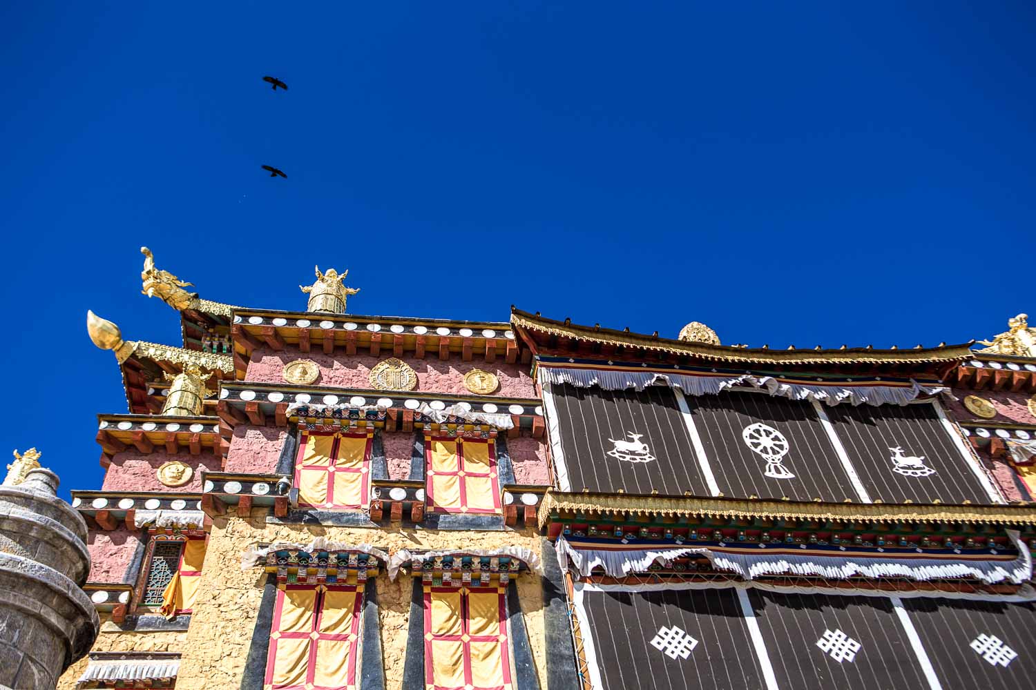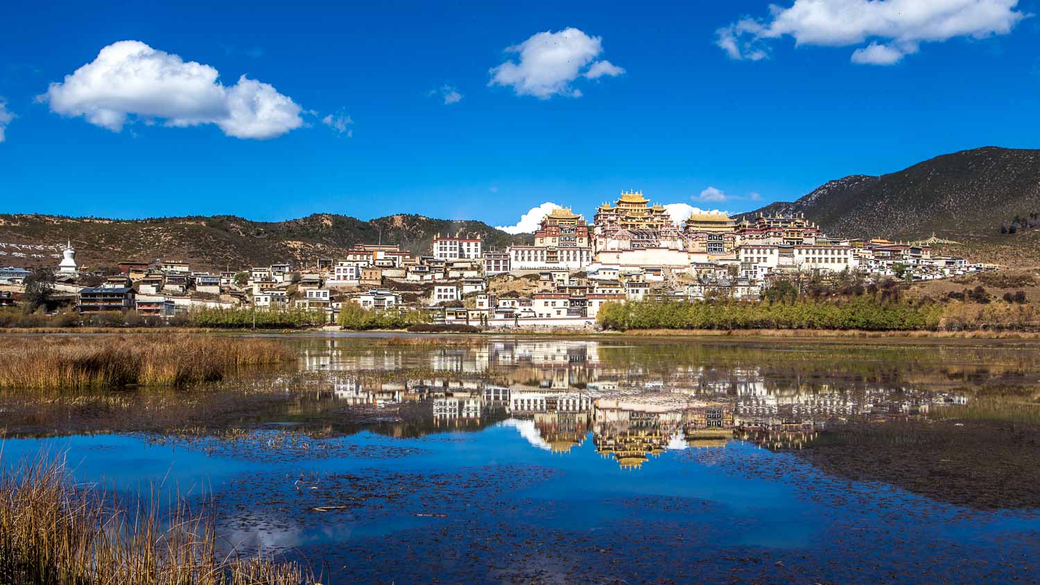 Kuil Sumtseling di dirikan tahun 1679 oleh Dalai lama ke 5 dan mengalami kerusakan parah ketika revolusi budaya di China pada tahun 1980-an awal. Kini Kuil Sumtseling telah di restorasi dan dihuni sekitar 2000 biksu. Di pusat kota Shangri-la terdapat kuil Songzalin yang dikelilingi oleh rumah-rumah khas Tibet lengkap dengan menara doa yang bisa di putar berwarna emas. Orang tibet percaya dengan memutar menara atau mani ´khor lo atau pemutar doa yang di tempelkan mantra, memiliki efek yang sama dengan mengucapkan doa tersebut.