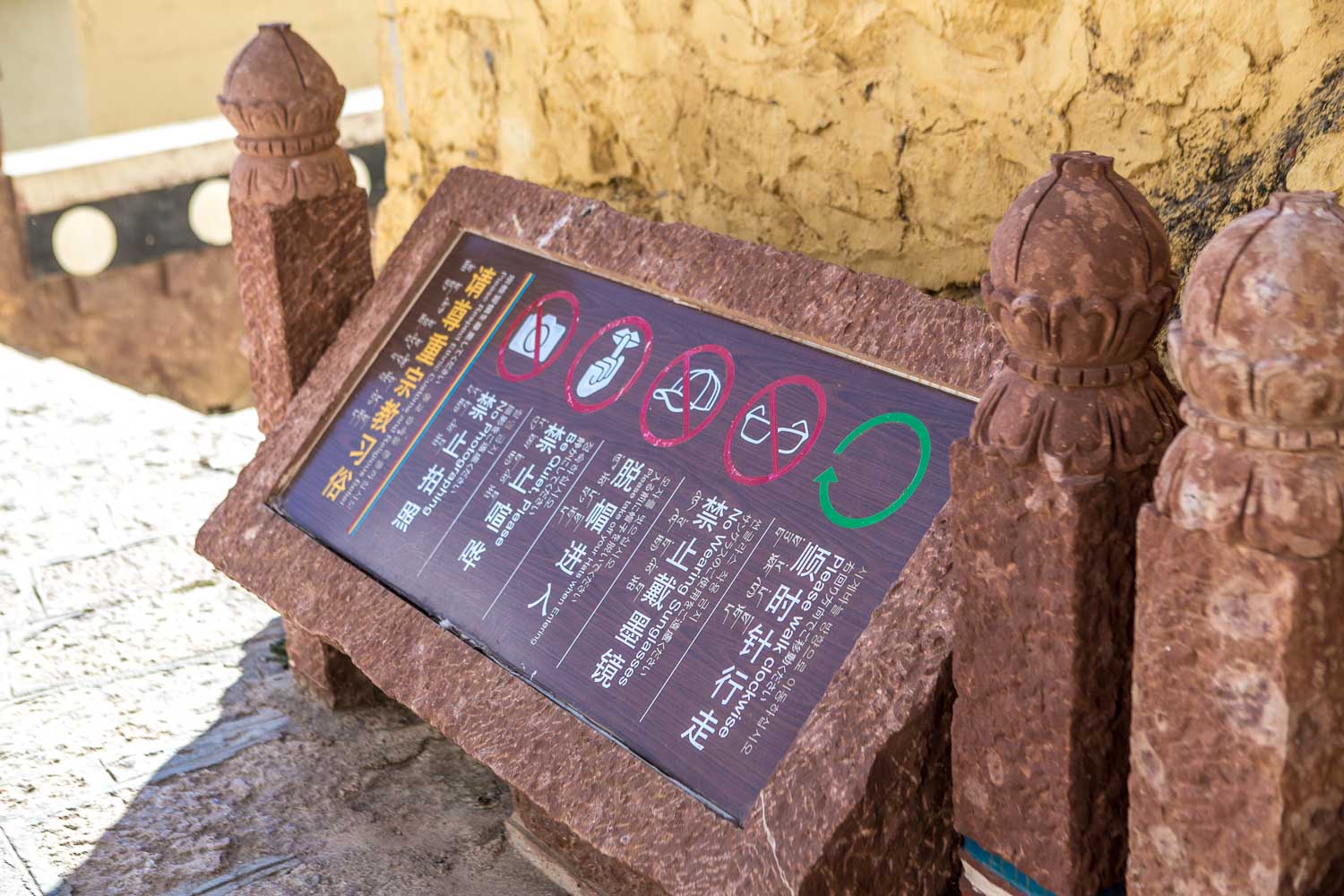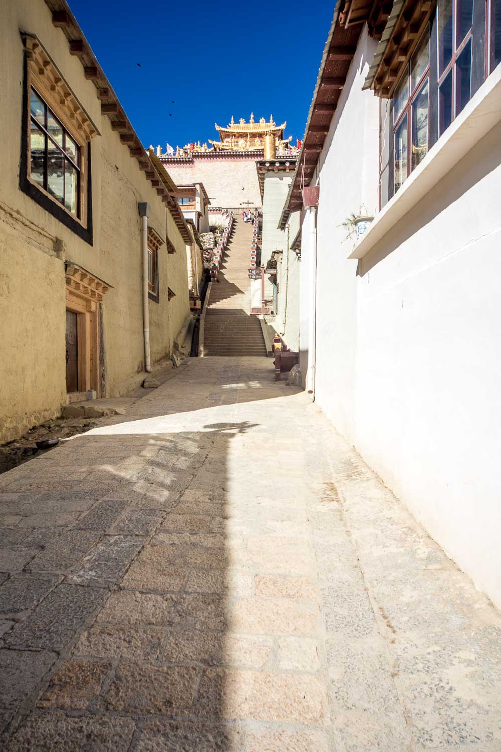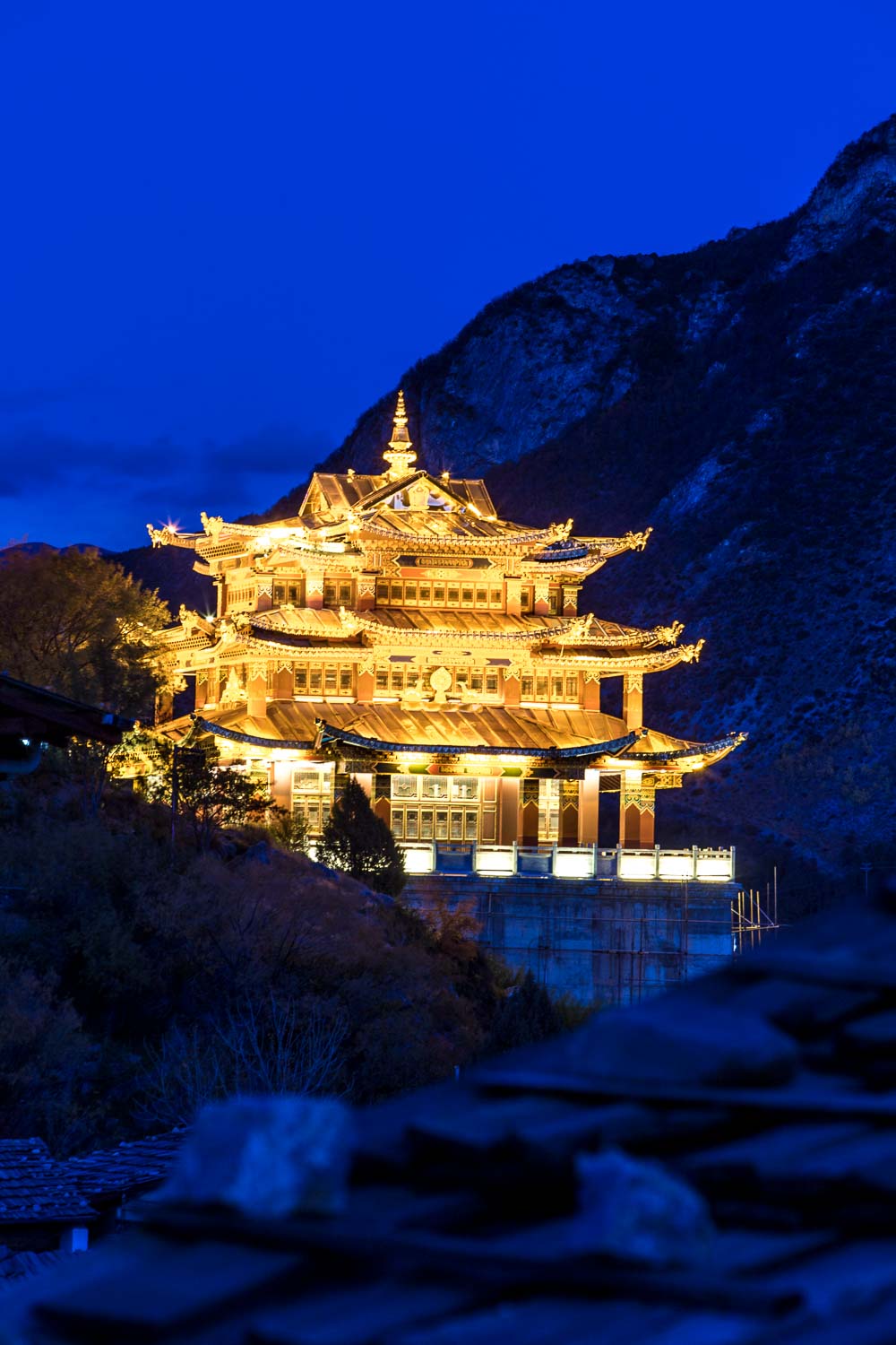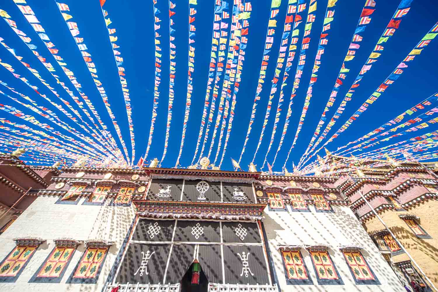 Kuil Sumtseling di dirikan tahun 1679 oleh Dalai lama ke 5 dan mengalami kerusakan parah ketika revolusi budaya di China pada tahun 1980-an awal. Kini Kuil Sumtseling telah di restorasi dan dihuni sekitar 2000 biksu. Di pusat kota Shangri-la terdapat kuil Songzalin yang dikelilingi oleh rumah-rumah khas Tibet lengkap dengan menara doa yang bisa di putar berwarna emas. Orang tibet percaya dengan memutar menara atau mani ´khor lo atau pemutar doa yang di tempelkan mantra, memiliki efek yang sama dengan mengucapkan doa tersebut.